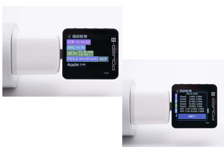 使用ChargerLAB POWER-Z KM003C测得USB-C口支持FCP、AFC、QC3+/4+、PD3.0、PPS、DCP、Apple 2.4A充电协议。